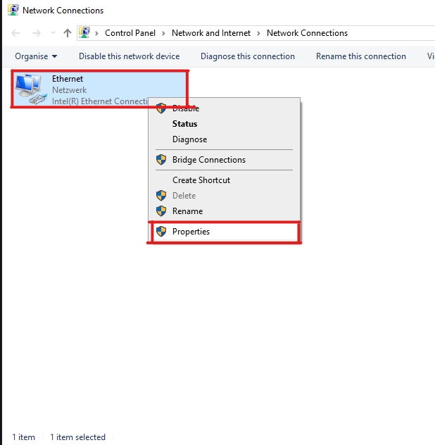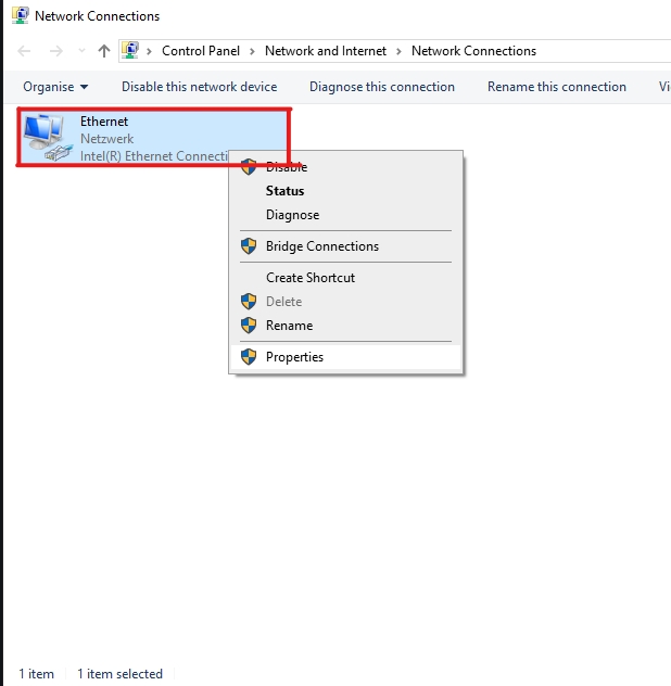 Press Right click on your Network device