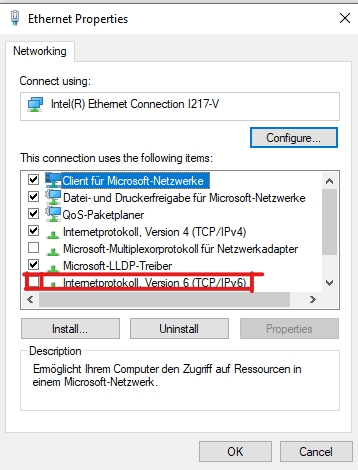and deselect IPv6