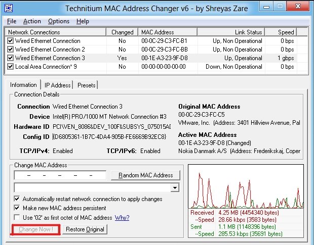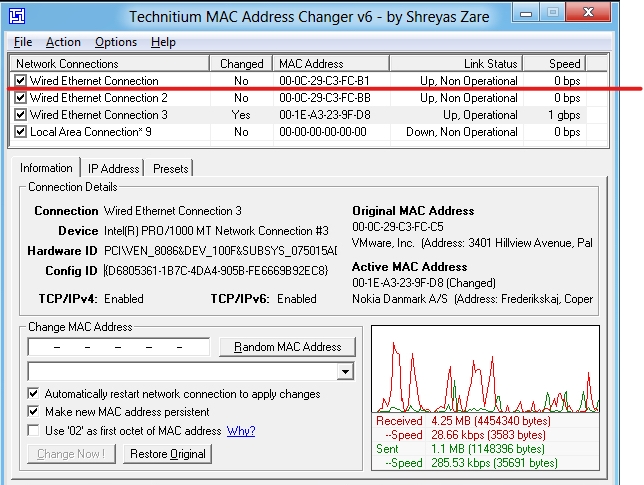 Instruction to spoof mac