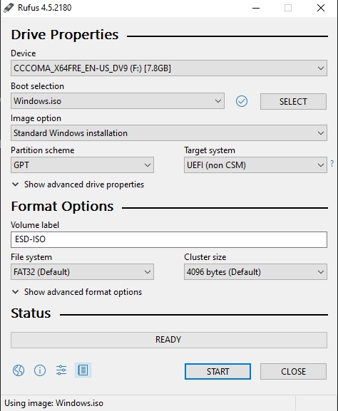 Press OK to begin the process and wait for Rufus to complete the USB formatting and ISO burning.